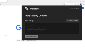 เมื่อป้อนพร็อกซีแล้ว ส่วนขยายจะมีฟีเจอร์ 'ตรวจสอบพร็อกซี' ที่เชื่อมต่อกับพร็อกซีแต่ละตัวอย่างเป็นระบบ ประเมินประสิทธิภาพและฟีเจอร์ด้านความปลอดภัย ผลลัพธ์จะถูกสรุปในรายงานที่ละเอียดซึ่งรวมถึงคะแนนคุณภาพที่ได้จากการวิเคราะห์อย่างละเอียด รวมถึงการตรวจสอบการรั่วไหลของ DNS และ header ฟังก์ชันนี้มีความสำคัญสำหรับผู้ใช้ที่ต้องการหลีกเลี่ยงการหยุดชะงักที่เกิดจากพร็อกซีคุณภาพต่ำ เพื่อให้แน่ใจว่าการโต้ตอบทางเว็บมีความเชื่อถือได้มากขึ้น